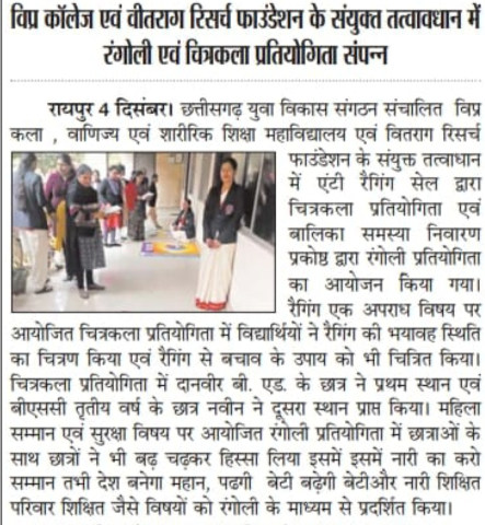 Rangoli Competition organized in collaboration of Vipra College & Veetraga Research Foundation on “Women's Dignity Safety”